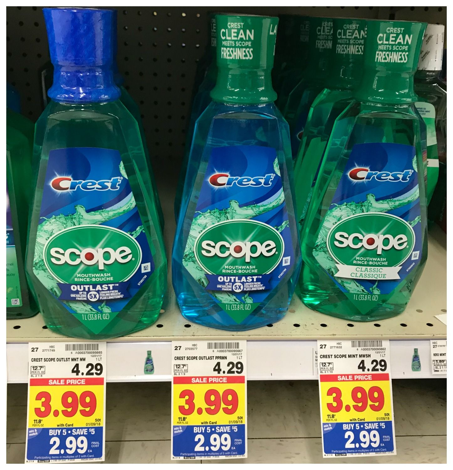 [pl-deal id=’200170′][pl-title]Crest Scope Mouthwash (1 L) – $2.99 (wyb 5 participating items thru 1/9)[/pl-title][pl-desc]Use $0.50/1 Scope Mouthwash product printable; Includes 237 ml or Larger; Excludes Trial and Travel Size