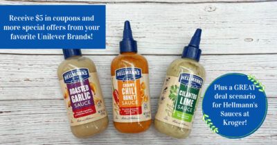 Sep 14 '21 @11:30 am2Receive $5 in coupons and more special offers from your favorite Unilever brands PLUS Hellmann’s Sauces are ONLY $1.74 at Kroger!!