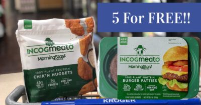 Mar 2 '21 @1:45 pm3Get 5 MorningStar Farms Incogmeato Patties and/or Chick’n Nuggets for FREE at Kroger!!