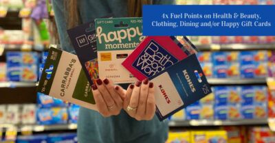 Feb 3 '21 @10:00 am4x Fuel Points on Health & Beauty, Clothing, Dining and/or Happy Gift Cards at Kroger!!