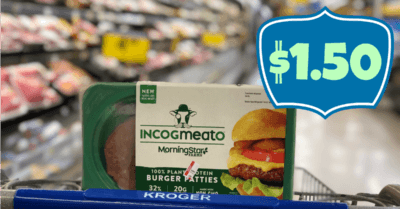 Sep 1 '20 @3:30 pm4Incogmeato 100% Plant Protein Burger Patties as low as $1.50 each at Kroger (Reg $5.99)!!