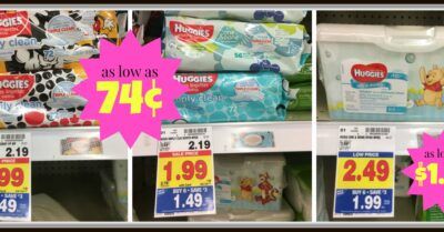 Here are the Kroger Mega Sale deals for wipes. Both Pampers and Huggies Wipes are part of the mega for the next two weeks. You’ll be paying $0.49 for a package of Pampers Wipes and $0.89 for the Huggies Wipes.