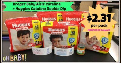 I’m telling you..Kroger is where it’s AT when it comes to stocking up on all of your baby needs. We have a new Huggies Catalina generating at Kroger that will score $5.00 On Your Next Order when you purchase a total of $25 worth (before coupons*). But, BUT…we ALSO have a new Baby Aisle Catalina double dip starting today that will make this deal even sweeter!! For this one, you’ll get back $10.00 to spend on your next BABY AISLE purchase when you buy $40 worth in a single transaction. I have a couple of deal scenarios for you below but you can mix and match any of the baby items you’d like to get to your $25 total for Huggies and $40 overall total.