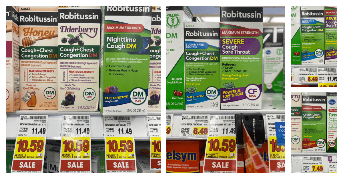 Get these great Robitussin Cough Syrup products at Kroger for as low as $4.49! We have a great Kroger Digital Coupon for these and an insert coupon! All of the information is below but choose what you need, what size and don’t pay full price!!!