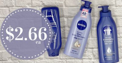 [pl-deal id=’547961′][pl-title]Buy (3) Nivea Lotions (13-16.9 oz) – $5.99 (Reg Price)[/pl-title]