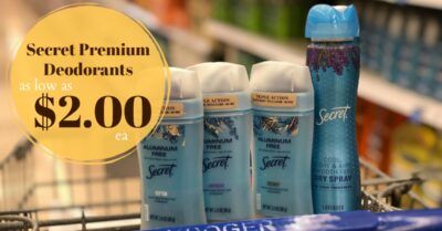 [pl-deal id=’437998′][pl-title]Secret Aluminum Deodorant (2.4 oz) – $4.99 (wyb 5 or more participating items thru 1/12)[/pl-title]