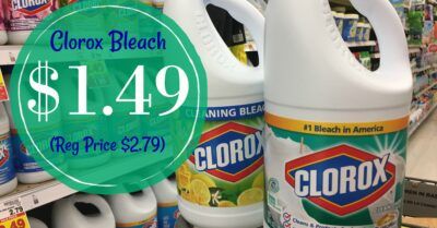 [pl-deal id=’195443′][pl-title]Clorox Liquid Bleach (55-64 oz) – $1.99 (wyb 10 participating items thru 11/14)[/pl-title]