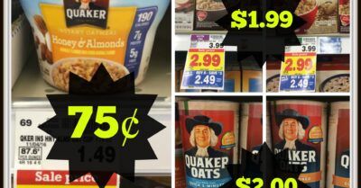 Quaker Oatmeal as low as $0.75 at Kroger!!