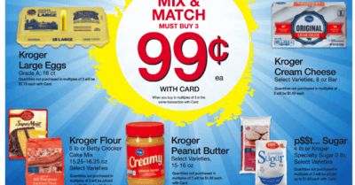 Dec 7 '16 @9:05 am5Kroger brand Cheese, Eggs, Cream Cheese, Peanut Butter, Flour and Sugar ONLY $0.99 each!