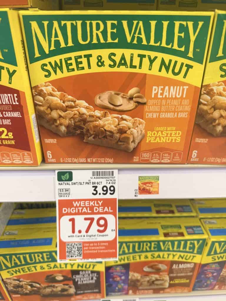 Mott’s and Nature Valley Bars are regularly priced at $3.99 at Kroger, and you can drop the price to just $1.79 with the $1.79 weekly digital coupon. The coupon can be used up to 5 times per transaction, so you can grab multiple boxes at that lower price. Just be sure to clip it before checkout so it applies.