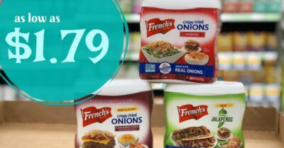 [pl-deal id=’208765′][pl-title]French’s Crispy Fried Onions (6 oz) – $2.79 (wyb 6 participating items thru 4/3)[/pl-title]