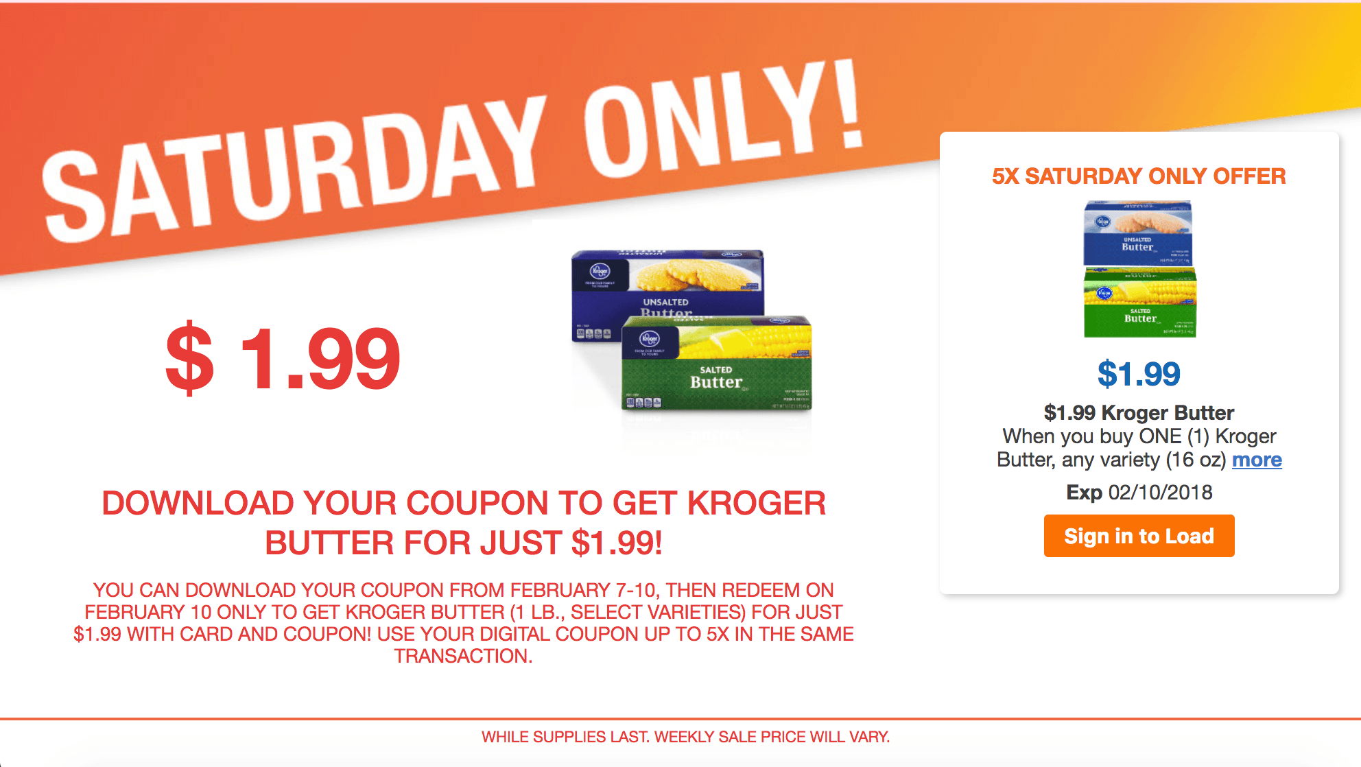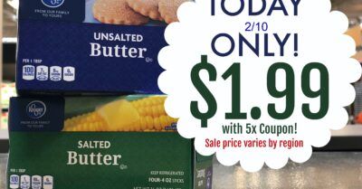 [pl-deal id=’203888′][pl-title]Kroger Butter (1 lb) – $1.99 (2/10 ONLY)[/pl-title]
